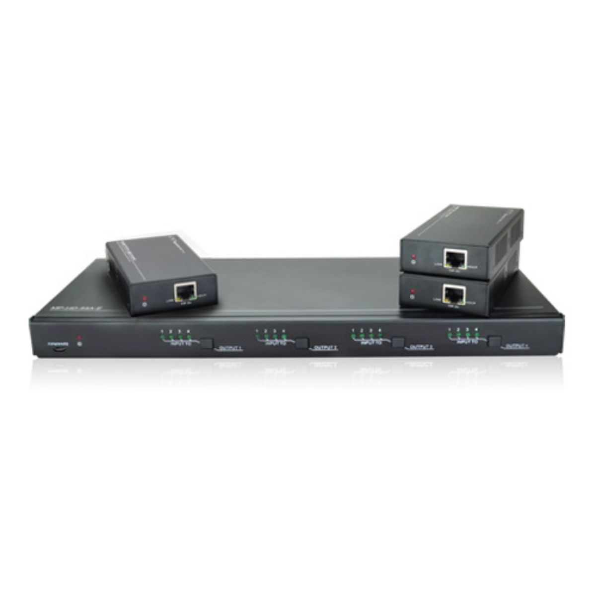 - HDBaseT Matrix Switcher that features 7 HDBaseT outputs and 1 HDMI output