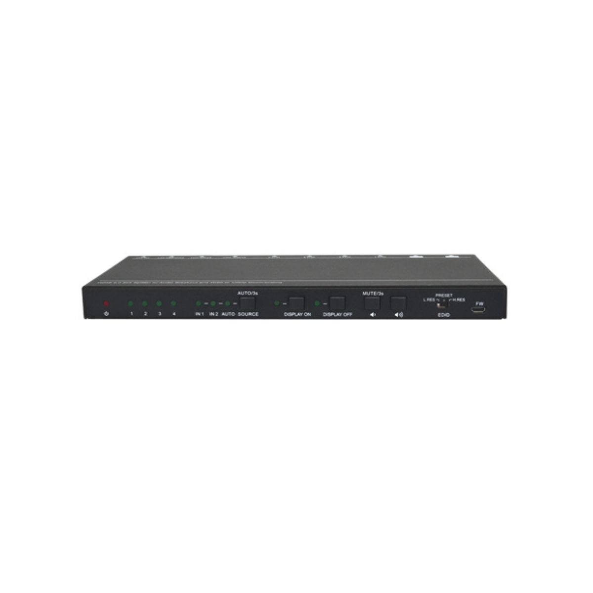 Comprehensive EDID management, the lowest/highest/default resolution can be chosen on the front panel for various applications.